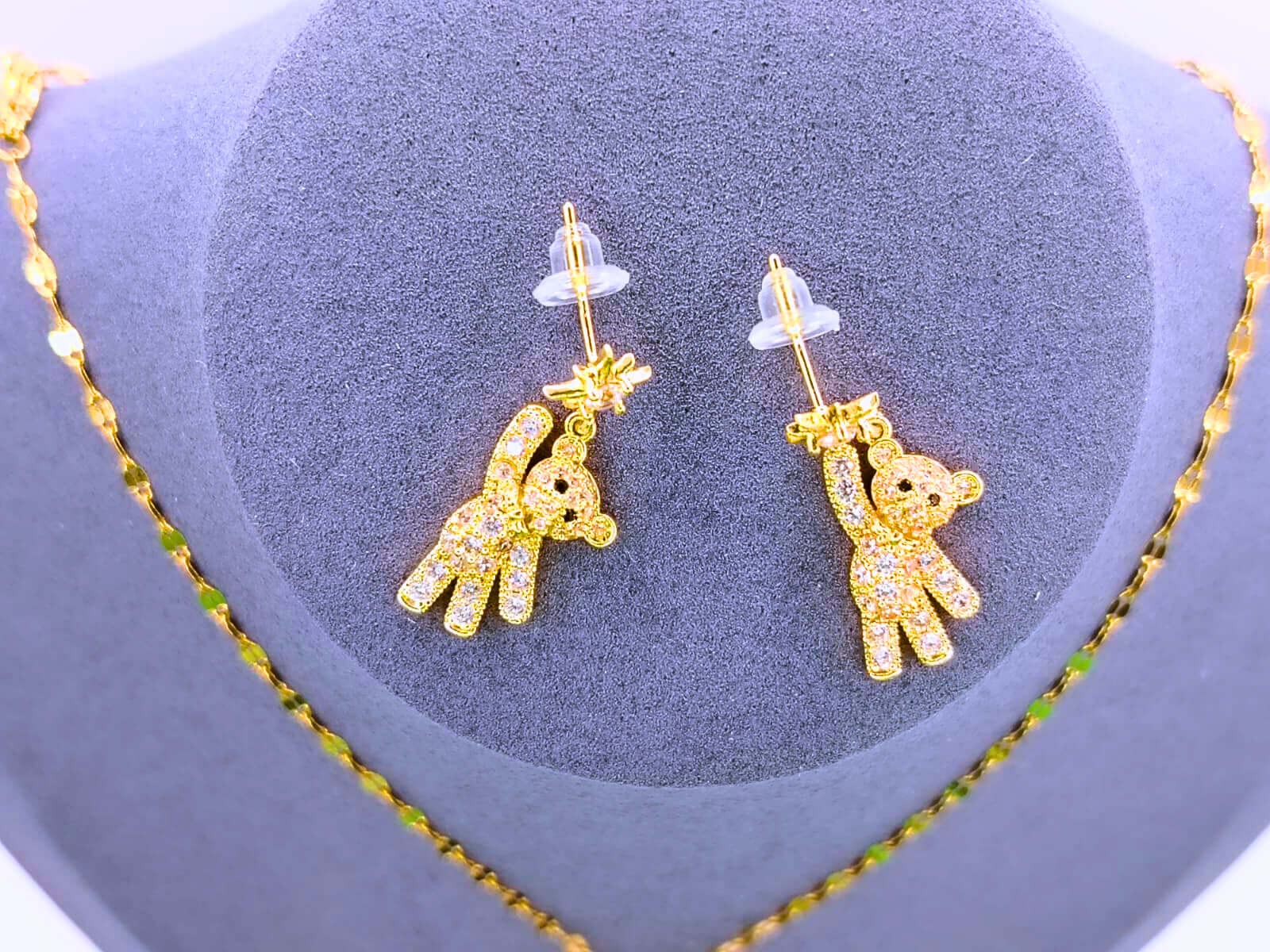 NEB0002 - Collar y Aretes Acero Inoxidable Oso Circonita Cubica Blanca Calenbi