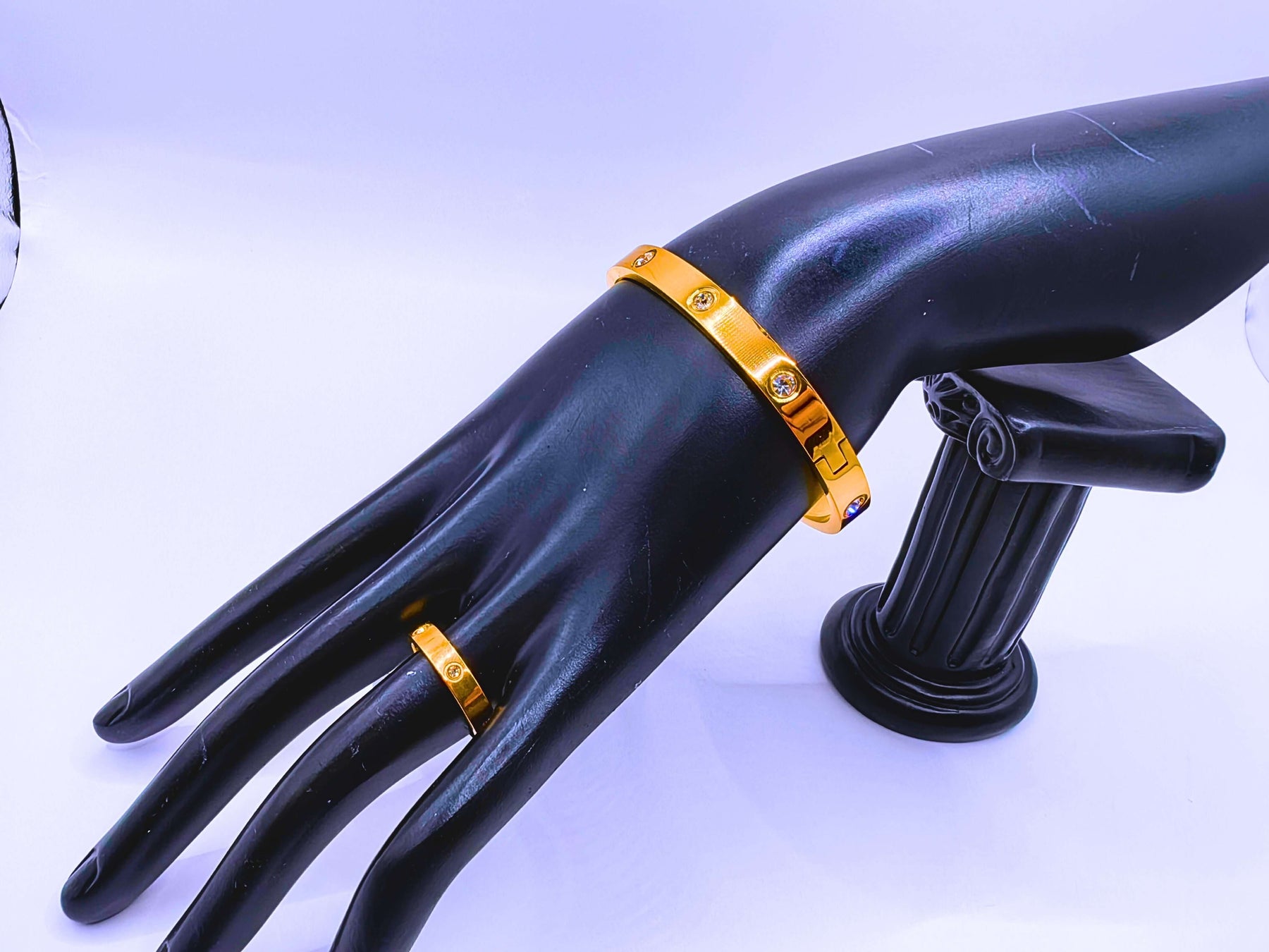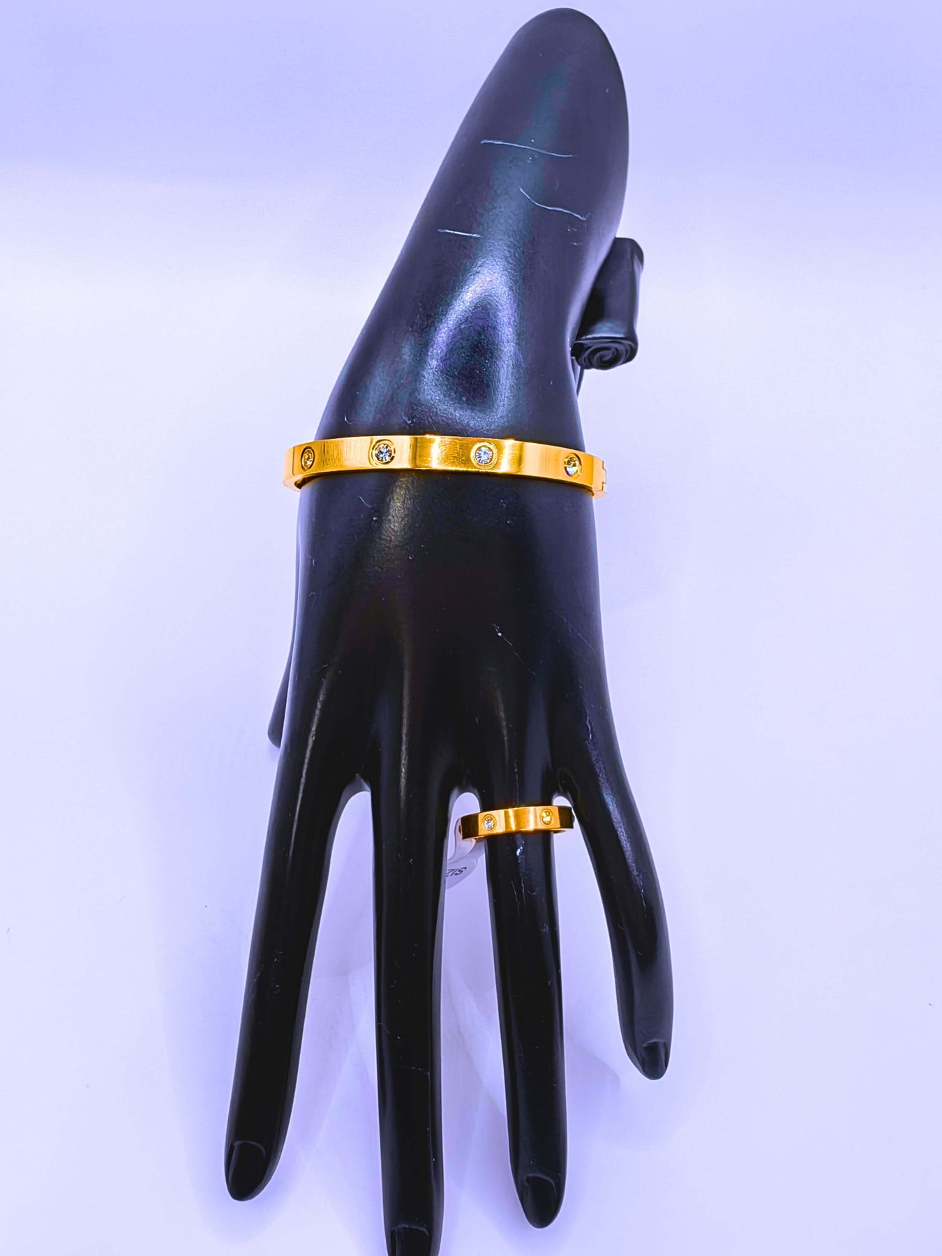 BB026 - Pulsera y Anillo Acero Inoxidable Broche Chapa Oro 10k Circonita Cubica Blanca Calenbi