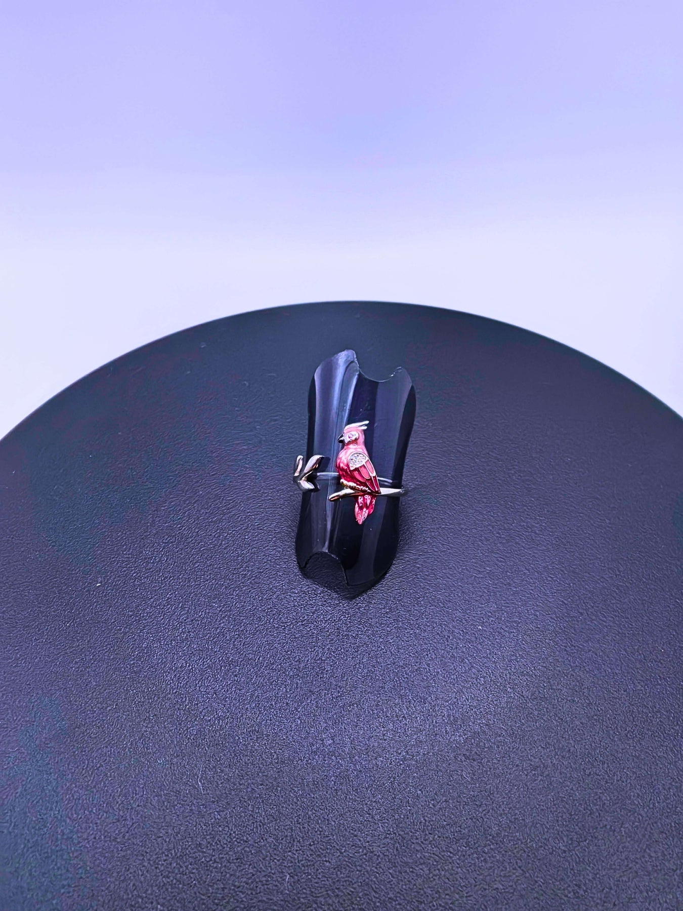 Anillo Plata Ley 925, ideal para destacar tu estilo. Con guacamaya en resina epóxica, un accesorio único y elegante que no debes dejar pasar, modelo Ajustable, Calenbi SR0066
