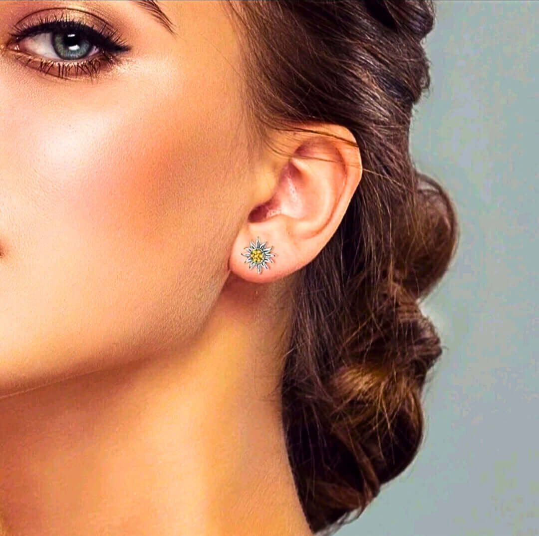 SE0001 - Aretes S925 Ley "Sol y Luna" Circonita Cubica Azul y Amarillo Calenbi