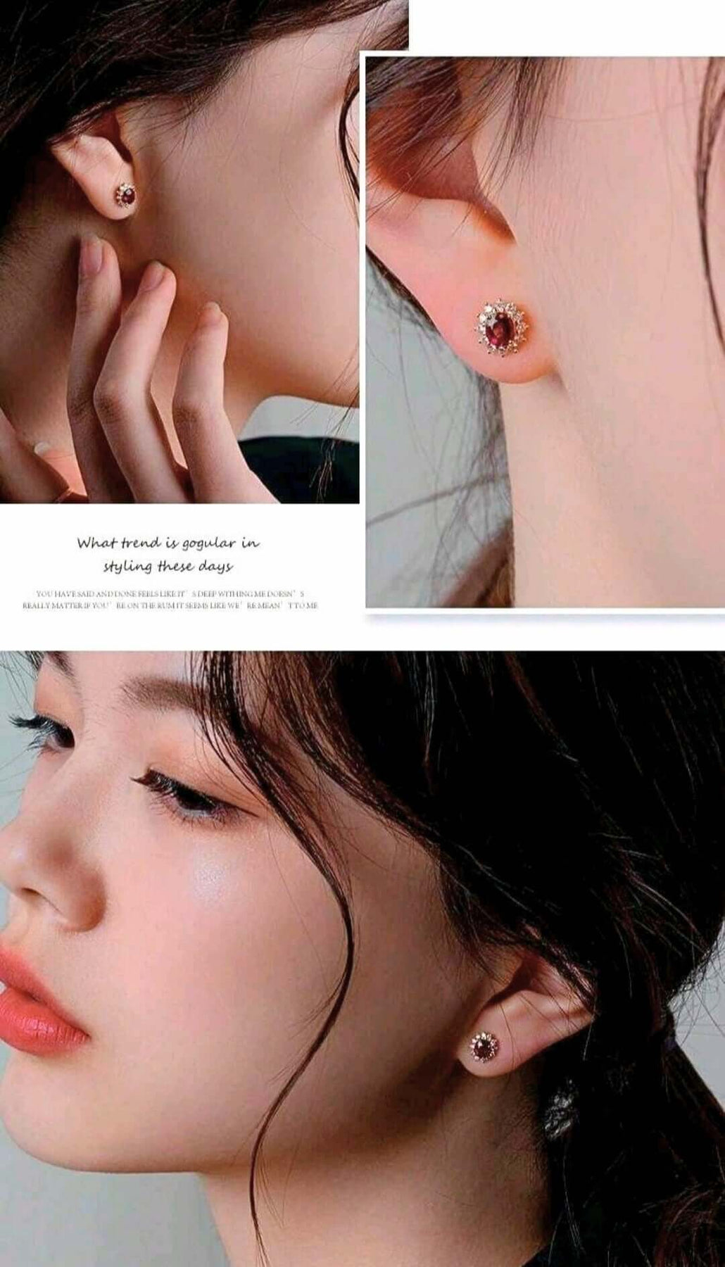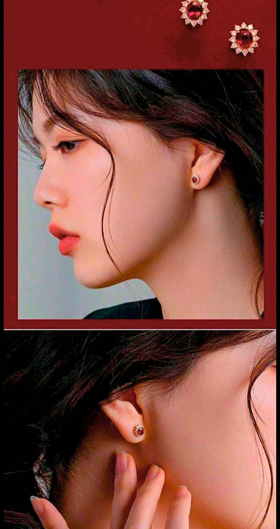 SNE0002 - Collar y Aretes S925 Ley "Rubí" Chapa Oro Rosa 14K Calenbi