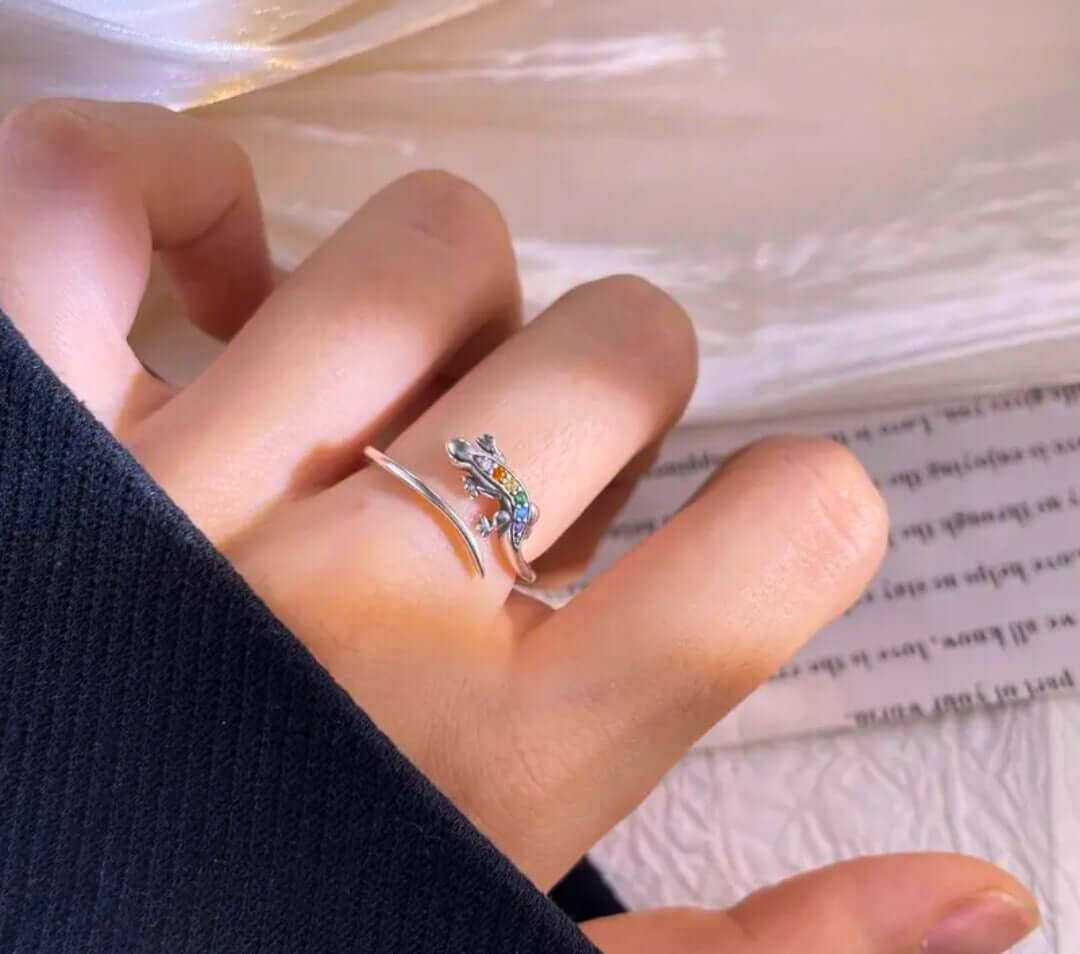 SR0006 - Anillo temático de fauna "salamandra" perfecto para cualquier ocasión, no solo para los antes de la vida silvestre, hecho en plata de ley y Circonita Cubica artificial con diseño Ajustable.