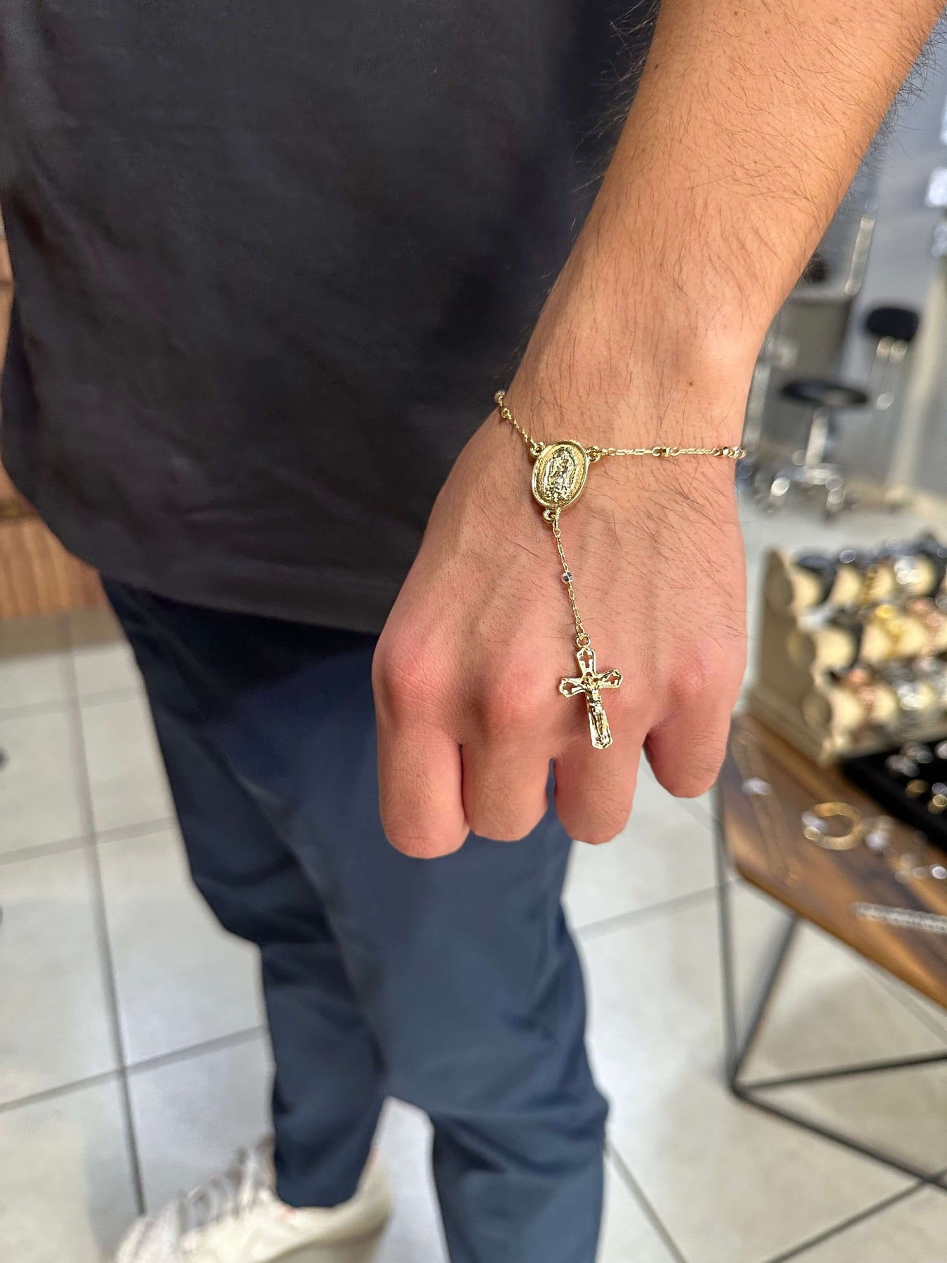 Pulsera Rosario Cruz 3 mm Oro Laminado 18 K