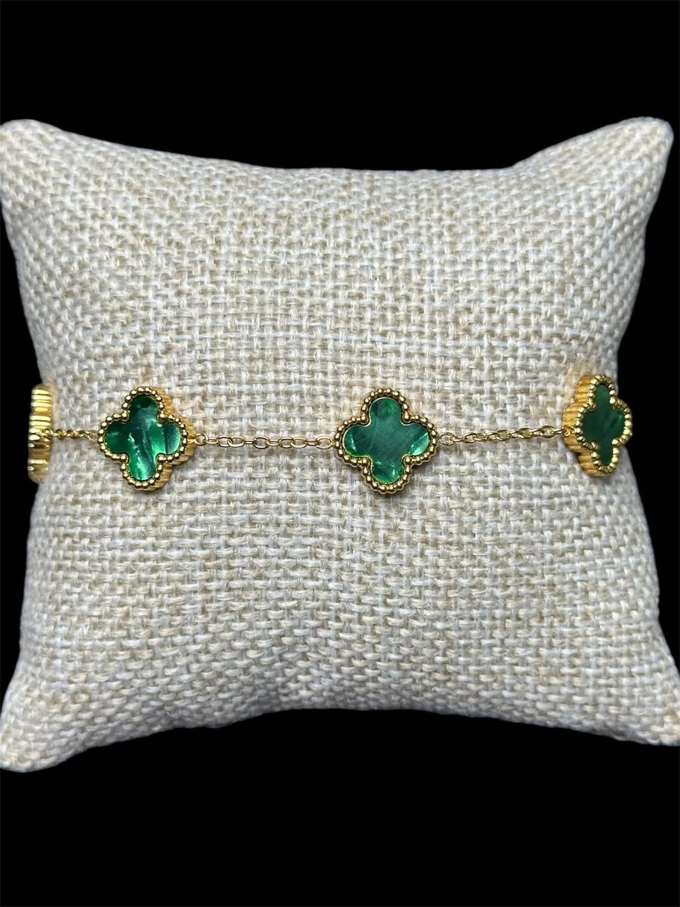 Medidas: El trébol mide 15 mm y el largo de la pulsera es de 18 cm + 5 cm de extensión (se puede ajustar a tu muñeca con la extensión).