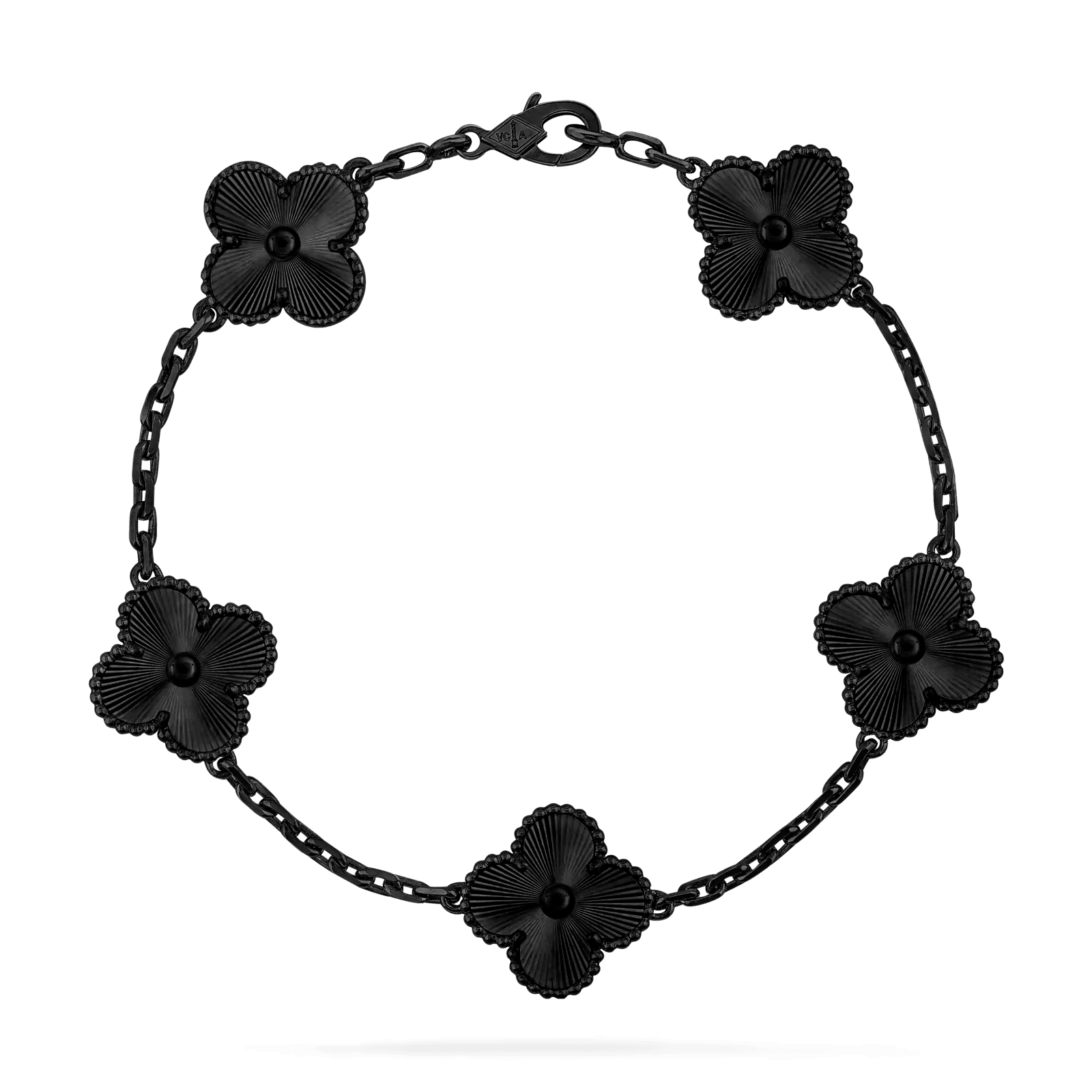 Brazalete Alhambra Black hecho artesanalmente en Plata 925 con un baño de oro tipo PVD.