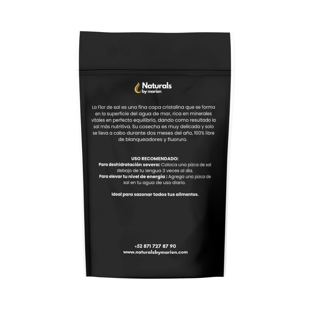 La flor de sal es una fina capa cristalina que se forma en la superficie del agua de mar, rica en minerales vitales en perfecto equilibrio, dando como resultado la sal más nutritiva. Su cosecha es muy delicada y solo se lleva a cabo durante dos meses del año, 100% libre de blanqueadores y fluoruro.
