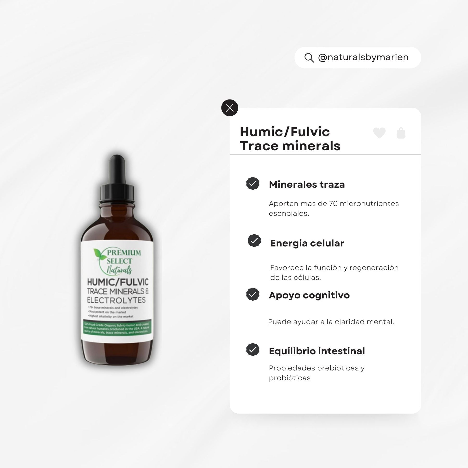 Los Humic/Fulvic Trace Minerales contienen más de 75 minerales y oligoelementos que proporcionan la nutrición esencial necesaria para la salud celular, el equilibrio celular, el crecimiento celular y la replicación. Excelente quelante (Elimina toxinas a través de la orina y la piel), potenciado la inmunidad. Calidad alimenticia. De rápida absorción.