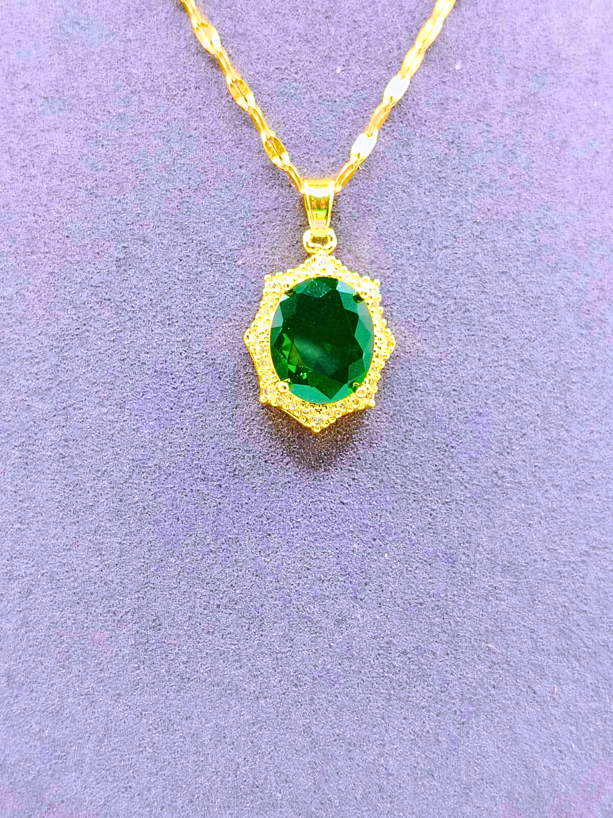 NEB0006 - Collar y Aretes Acero Titanio "Corona De Rey" Circonita Faceteada Verde Chapa Oro 14k Calenbi