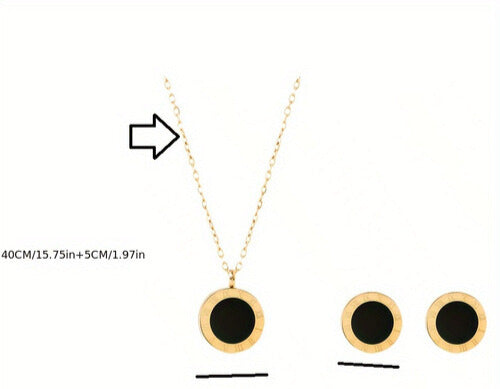 NEB0008,9,19,20 - Collar y Aretes Acero Inoxidable Números Romanos Chapa Oro 10k Calenbi