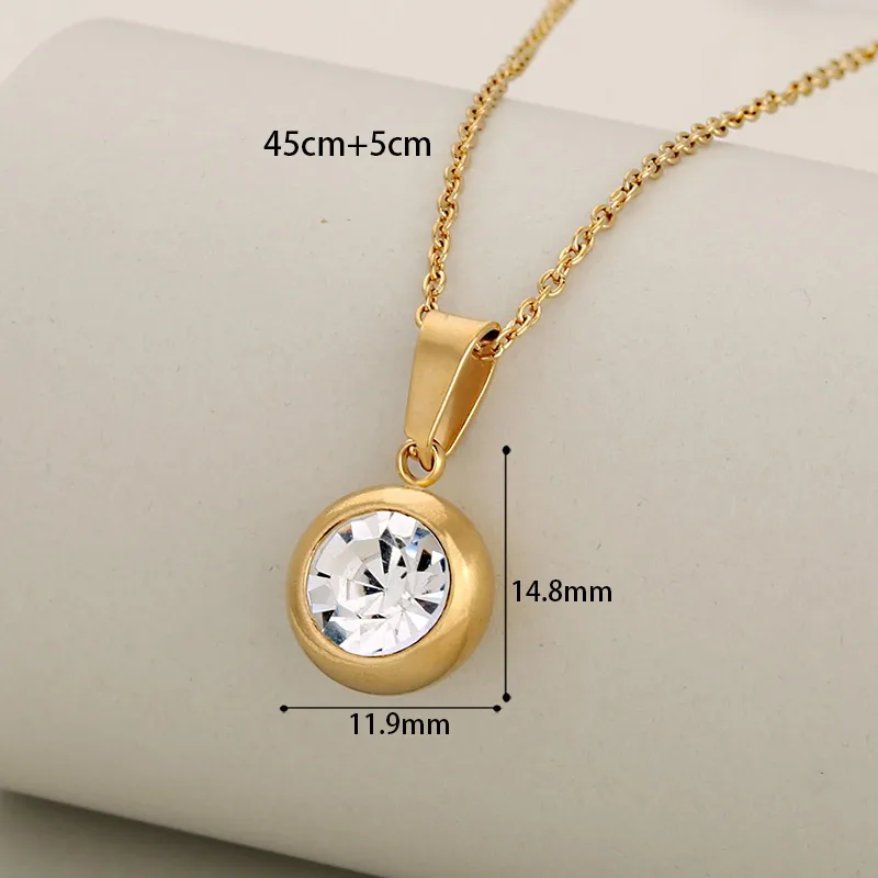 NEB0021 - Collar y Aretes Acero Inoxidable Circonita Cubica Blanca Chapa Oro 10k 304L Calenbi