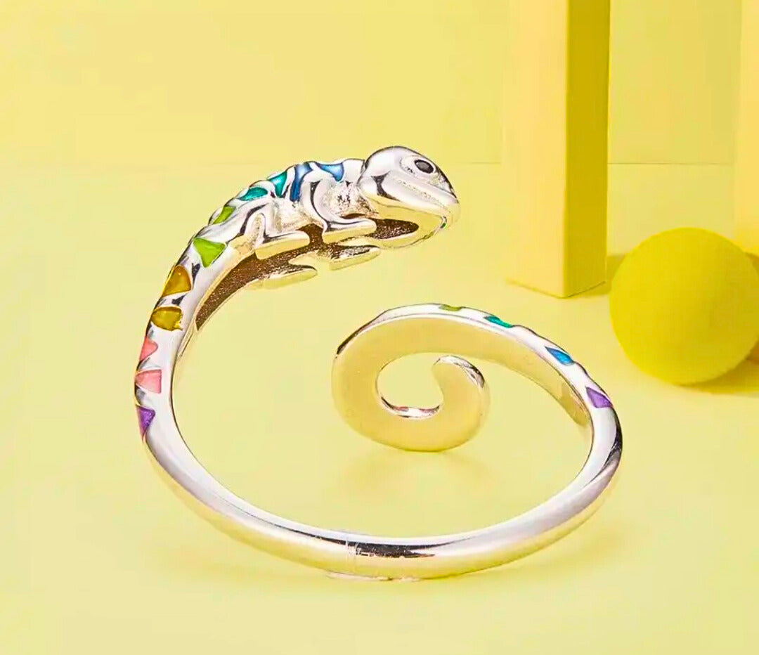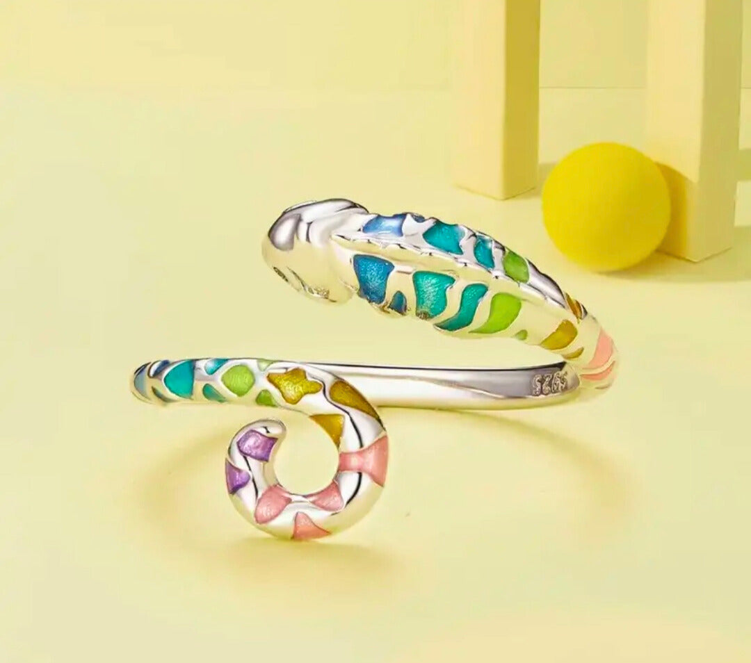 SR0021 - Anillo S925 Ley Recina Epoxica "Camaleón" Ajustable Calenbi