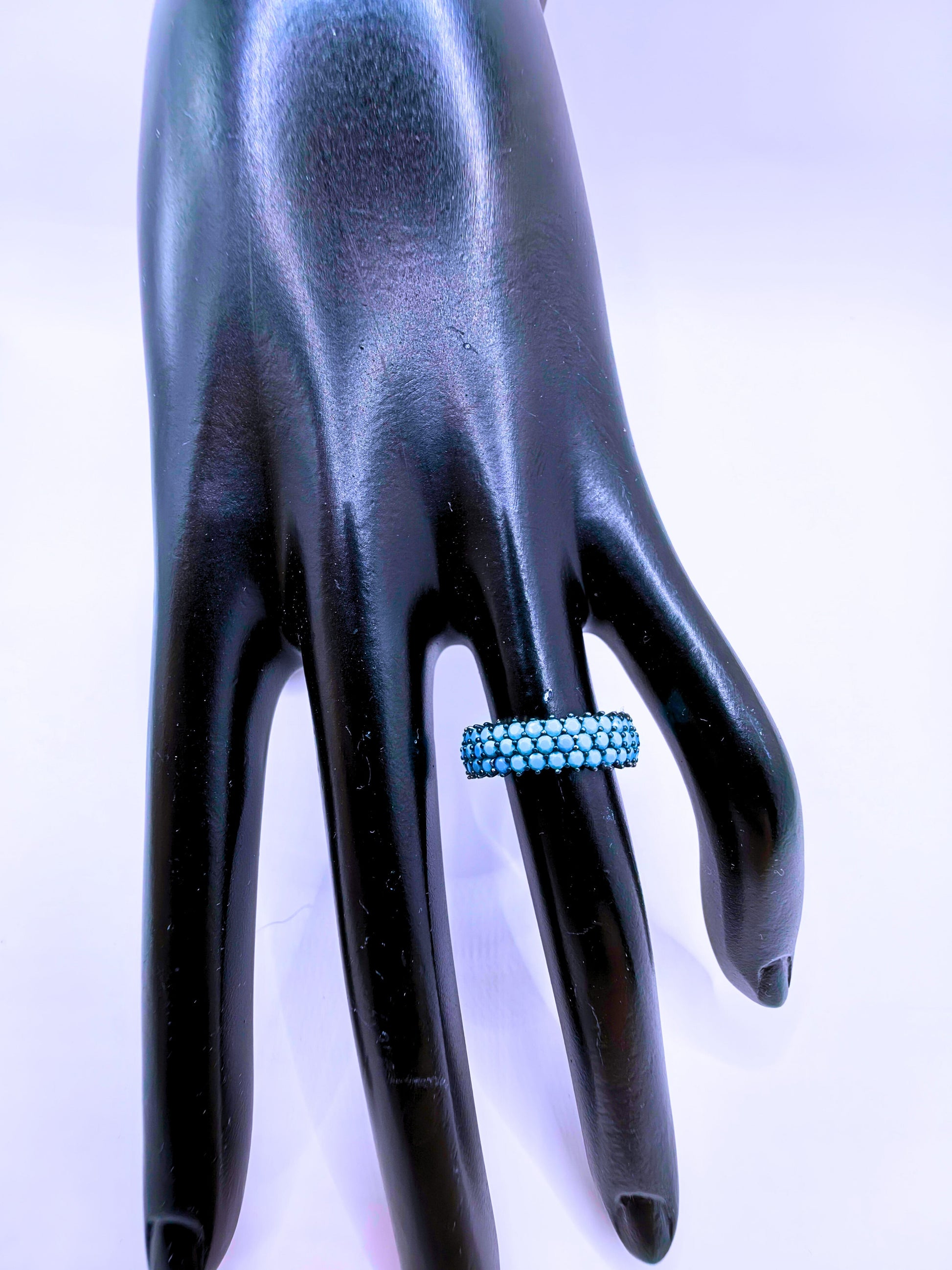 SR0035 - Anillo S925 Esterlina Turquesa "Tres Filas" Cerrado Calenbi